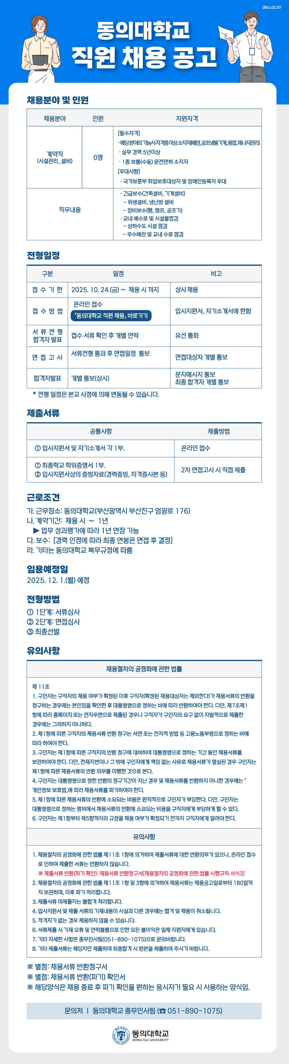 동의대학교 계약직 직원 채용 안내[시설관리_설비]