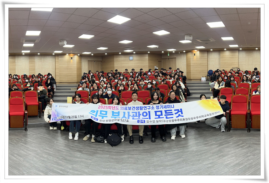 2025학년도 의료보건생활연구소가 11월 24일 5시 공대 527호 원형강의실에서 의료보건생활대학 학생 200여 명이 참석한 가운데 2025학년도 정기세미나를 개최했다.
